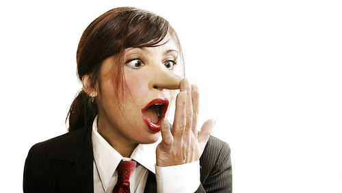 Seseorang yang berbohong cenderung memakai kata-kata seperti “tapi”, “kecuali”, “sedangkan” karena proses berpikir yang rumit ketika berbohong. Dan juga biasanya mereka suka melakukan pengulangan. Si dia juga akan sering memakai kata “aku”, “punyaku”. Di dalam cerita yang dilontarkan oleh pembohong, kamu juga akan menemukan sedikit kata ganti pribadi.